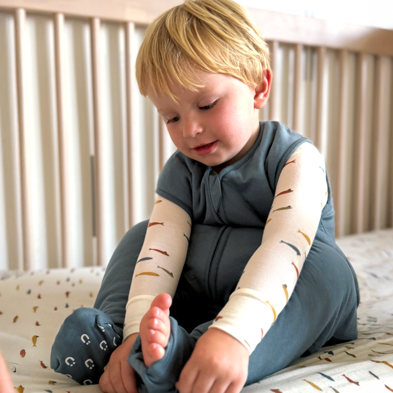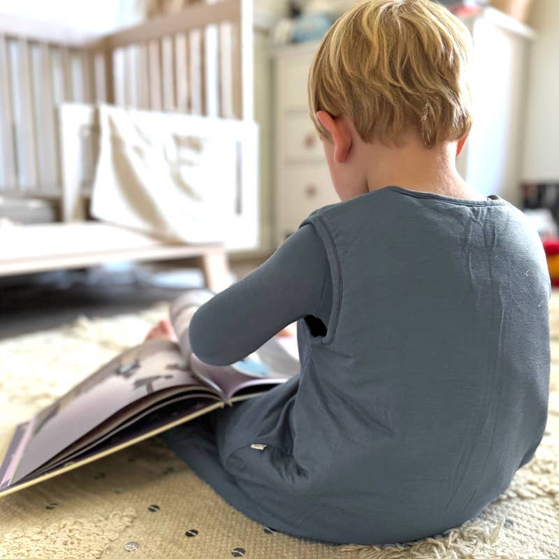 Our popular sleep bag now features a legged version with convertible footies ! Babies will stay tucked in a soft, down-alternative surrounded by silky bamboo rayon, with our unique, easy-to-undo, diaper/potty-ready zipper. This versatile piece is also perfect for everyday adventures, keeping babies snug and cozy even during brisk outings.
